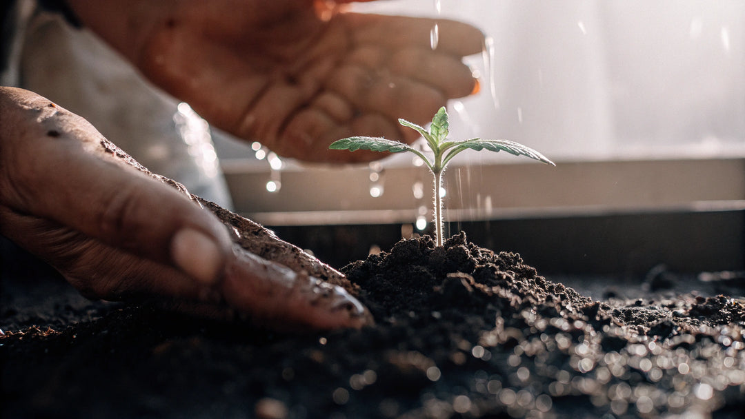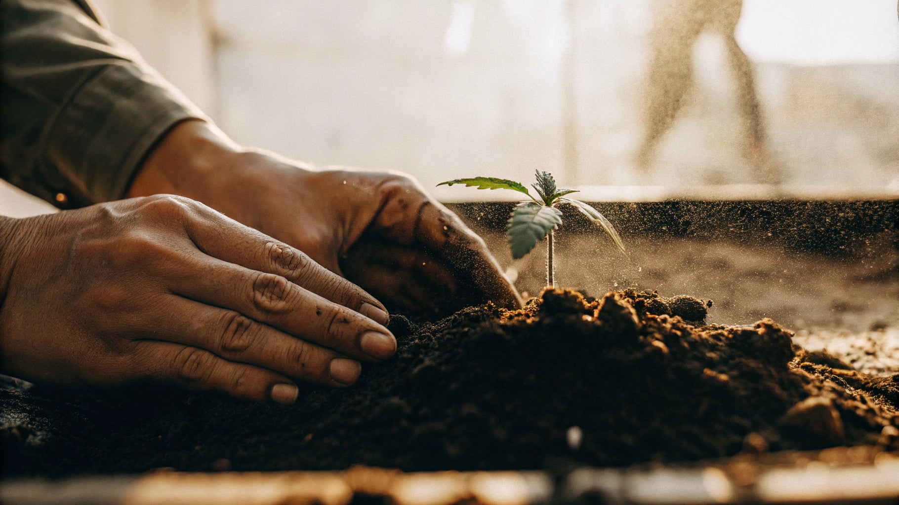 2. Pflanze Deine Keimlinge mit Sorgfalt: Verwende saubere Hände, um die Keimlinge vorsichtig mit der Wurzel nach unten in Anzuchterde einzusetzen. Bedecke die Keimlinge mit maximal 0,5 cm Erde, damit sie optimal wachsen können. Staunässe kann Hanfpflanzen schaden.